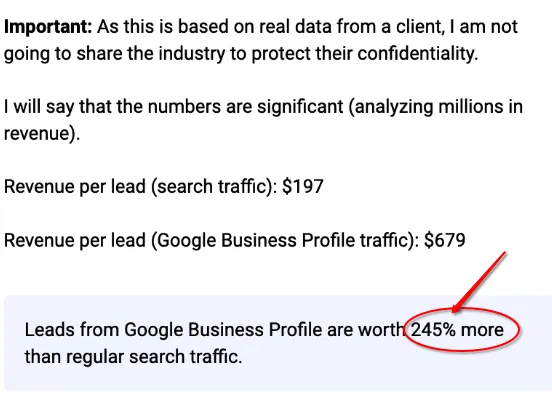 We took a clients results and what they generated in sales from FREE Google Business Profile leads Vs Leads they were paying $196 for with paid ads. Crazy!